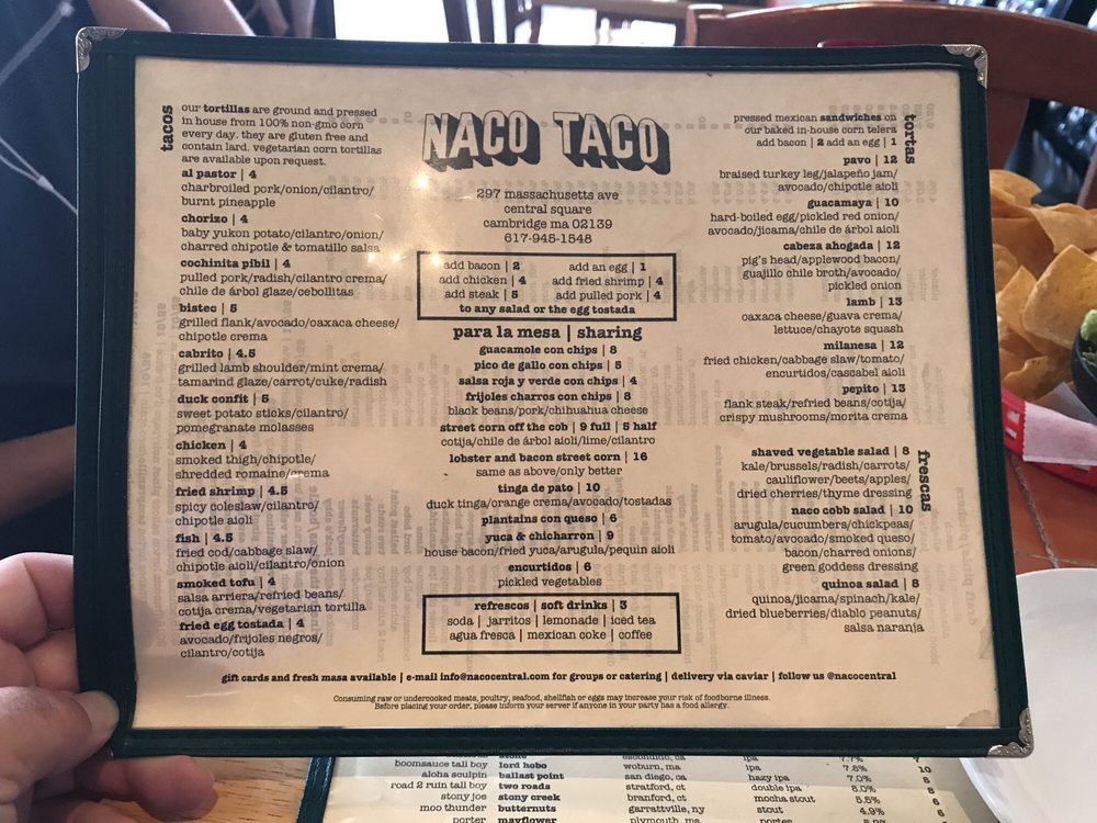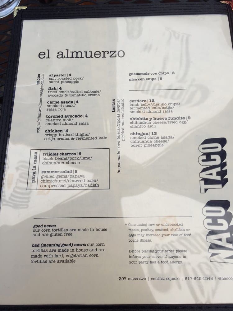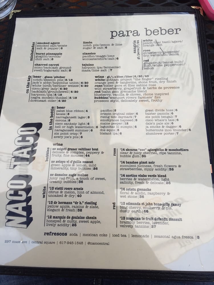 Naco Taco, located in Cambridge, MA, offers a unique mix of cocktail bar vibes and Mexican cuisine. The menu includes vegan options and limited vegetarian choices, making it a versatile spot for various dietary preferences. Known for its fresh taco shells, house-made tortillas, and flavorful street corn, Naco Taco provides a satisfying dining experience. Customers praise the friendly staff, refreshing drinks, and relaxed atmosphere. The outdoor patio adds to the appeal, creating a trendy and casual setting perfect for gatherings with friends or family. Although some minor issues like slightly overcooked chips have been noted, overall, Naco Taco stands out for its quality food and accommodating service. Takeout and catering options are available, making it a convenient choice for any occasion.